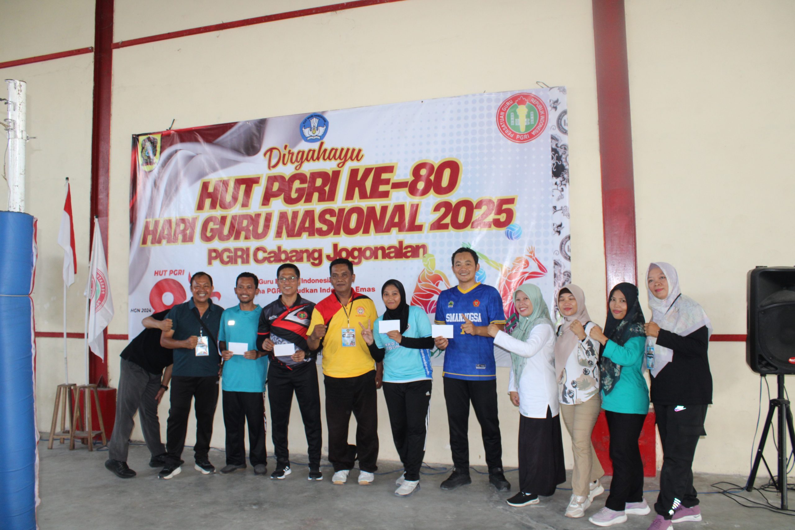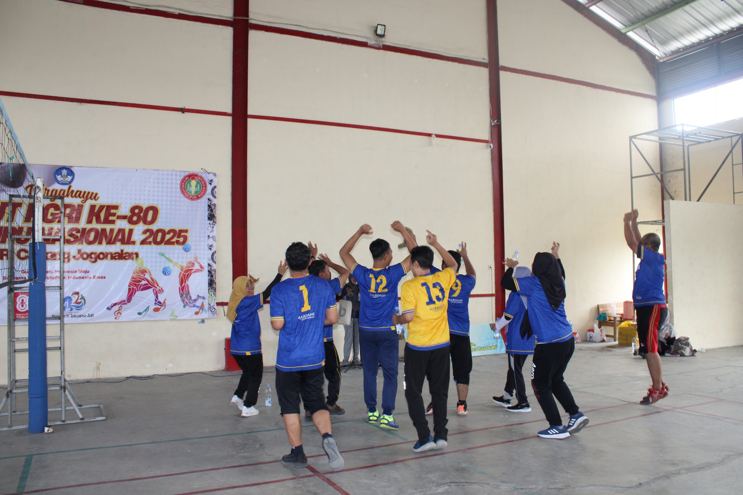 Dalam rangka memperingati Hari Guru Nasional Tahun 2025 dan HUT PGRI ke-80, PGRI Cabang Jogonalan menggelar lomba voli antarsekolah yang diikuti oleh guru-guru dari berbagai satuan pendidikan di wilayah Jogonalan.